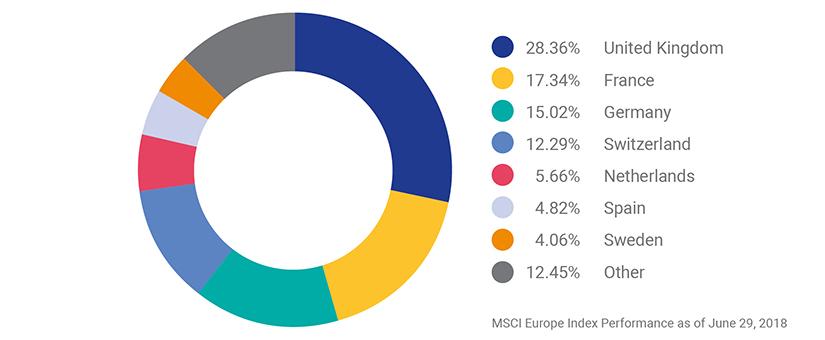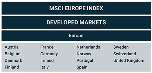 MSCI Europe Index: Covers more than 400 securities across large and mid-cap size segments and across style and sector segments in 15 developed markets. Performance | Factsheet