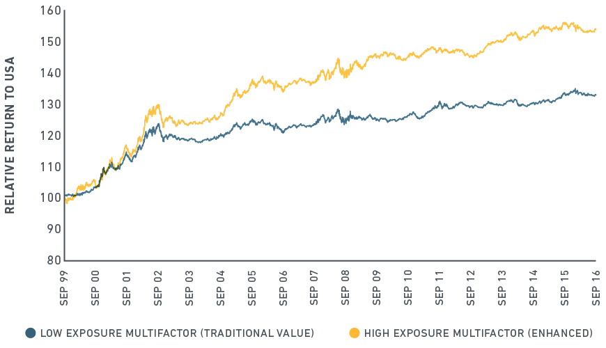 Multi-factor with enhanced value has outperformed traditional value since the financial crisis