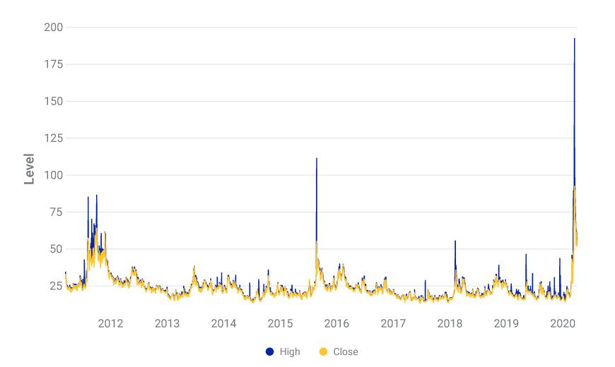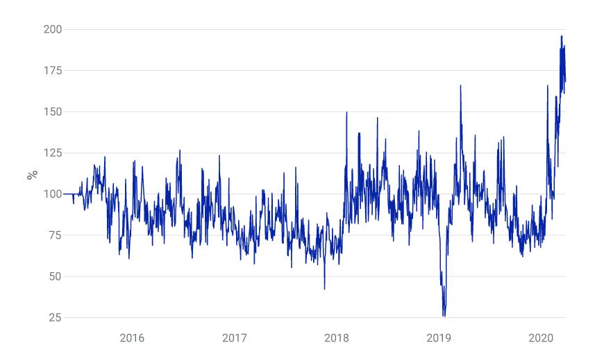 Sample period: Feb. 24, 2020, to March 31, 2020. Source: CQG